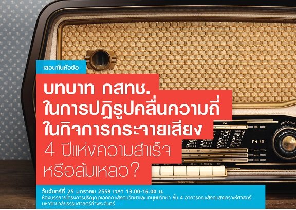 "บทบาท กสทช. ในการปฏิรูปคลื่นความถี่ในกิจการกระจายเสียง: 4 ปีแห่งความสำเร็จหรือล้มเหลว?"